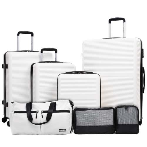 Tripcomp 7-Piece Hardside Luggage Set with TSA Lock Lightweight ABS Suitcase (16/20/24/28 Inch) with 360° Silent Spinner Wheels, Duffel Bag and 2 Packing Cubes (White)