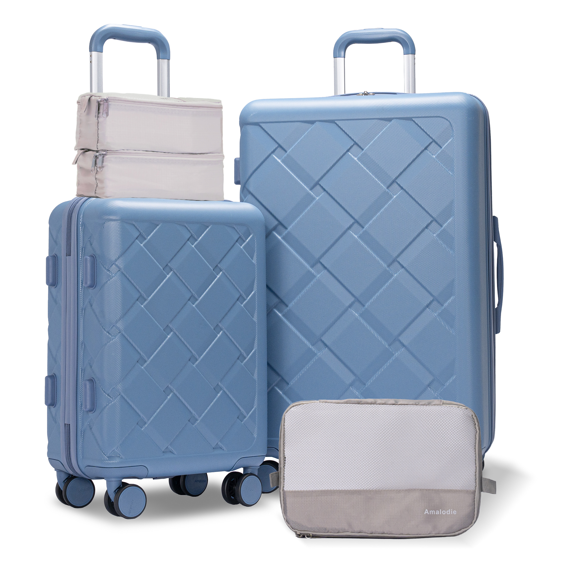 Amalodie 2 piecec Hardside Spinner Luggage Sets(18"&26") with 3PC Organizer Bags,Light Blue